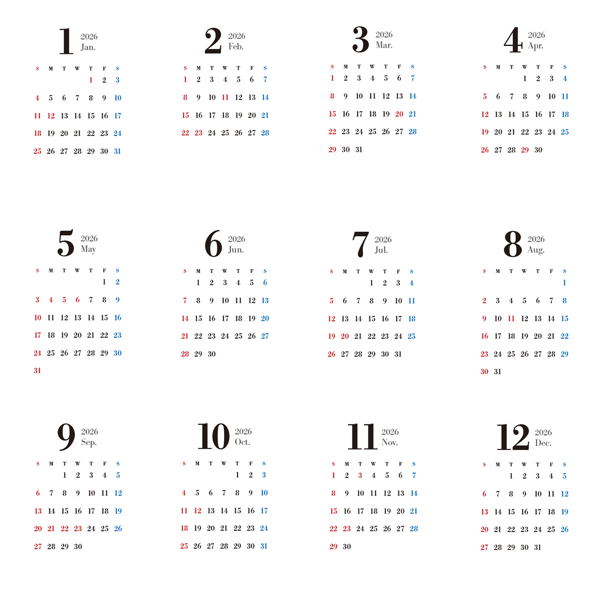 【スマホサイズ】文字月表/セリフ 名入れ卓上カレンダー