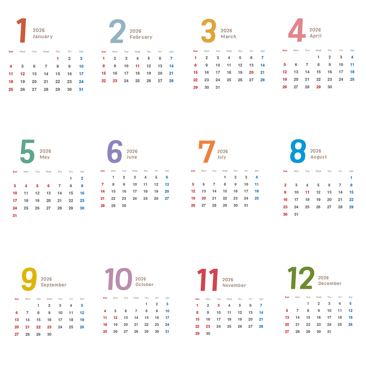 ロゴや社名を入れるだけで簡単! はがきサイズで日付が見やすいカレンダーです。 ※商品写真はサンプルです。実際のデザインは5枚目の一覧をご確認ください。