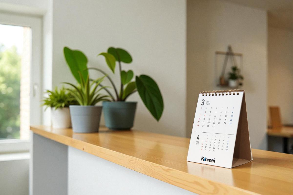 ロゴや社名を入れるだけで簡単! はがきサイズで日付が見やすいカレンダーです。