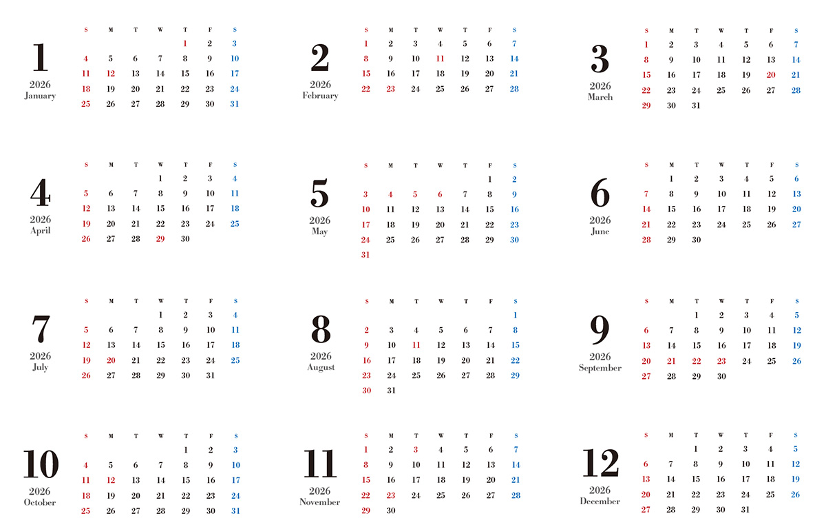 枚数 表紙+12カ月分[合計13枚]