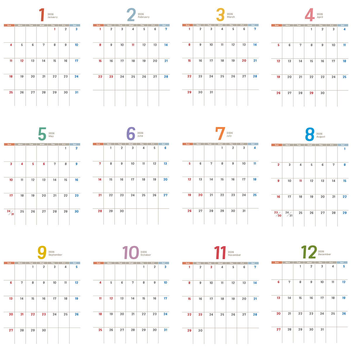 ロゴや社名を入れるだけで簡単! 日付が大きく書き込みもしやすいカレンダーです。 ※商品写真はサンプルです。実際のデザインは3枚目の一覧をご確認ください。
