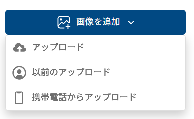 アップロード:ご自身のパソコン・端末にある画像を選択して(複数選択可)アップロードする。