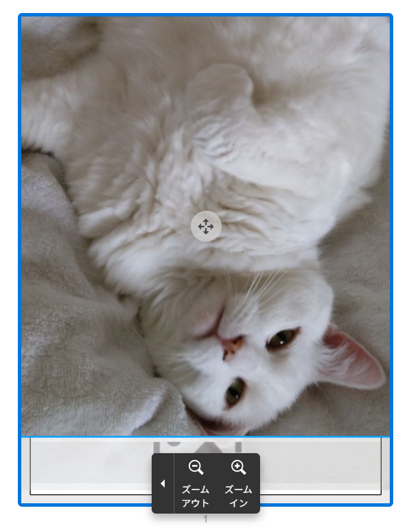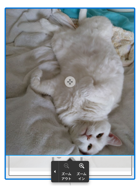 写真を大きくする際は、写真ボックス下の「ズームアウト」「ズームイン」アイコンを使うことで、拡大縮小できます。