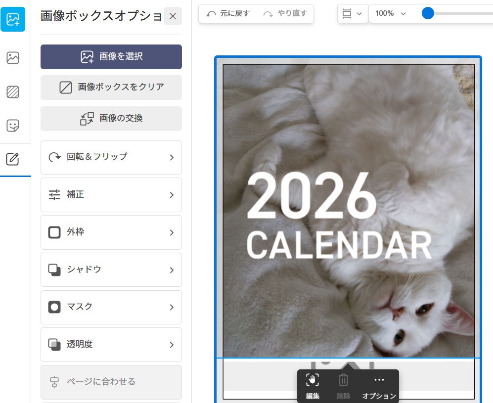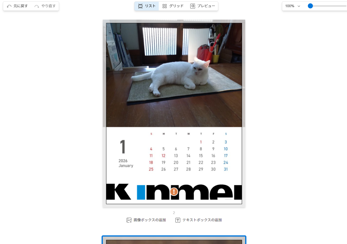写真のトリミング・移動・変更や、写真ボックス・テキストボックスの追加、テキストボックスへの文字入力など、ほぼすべての編集作業を行うことができます。