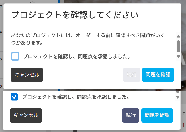 問題がない場合は「プロジェクトを確認し、問題点を承認しました」のチェックボックスを入れてください。