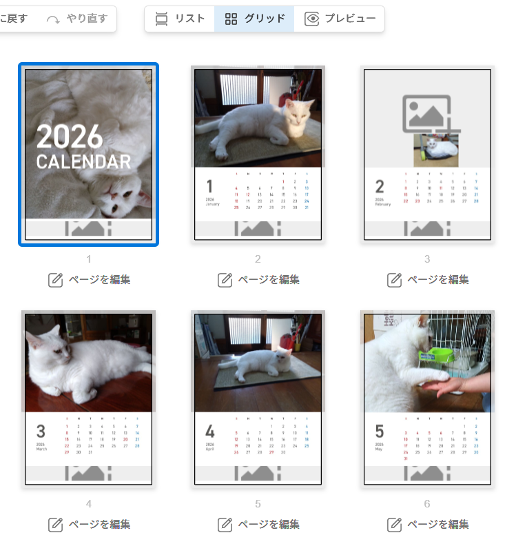 どのページにどの写真を入れるか、前後を考えたり、写真の大小や、流れなどを確認することがしやすい画面です。